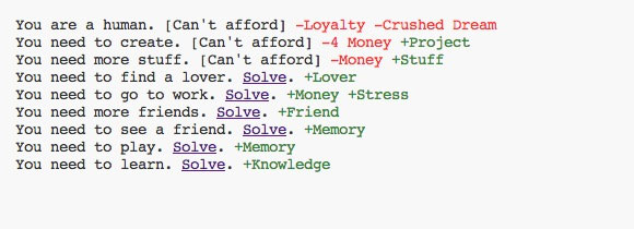 Markus “Notch” Persson, per chi non lo sapesse, è l’autore di Minecraft e di Wurm Online, oltre che di un’altra dozzina di giochi free, di vario tipo. Recentemente se n’è uscito con Drowing in Problems, un gioco tanto minimale quanto disperato, che ricorda a tratti A Dark Room, ma che fin dai primi click si presenta per quello che è: un tuffo in una sorta di disincantato esistenzialismo, in cui la vera scelta è fra bere l’amaro calice e arrivare all’inevitabile fine o uscire prima della conclusione del gioco, chiudendo la finestra e rifiutandosi di proseguire.