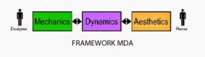 Proababilmente la definizione più famosa è quella di Robin Hunicke, Marc LeBlanc e Robert Zubek, che nel Framework MDA definiscono le meccaniche come le azioni, i comportamenti e meccanismi di controllo regolamentati e forniti ai giocatori all’interno del mondo di gioco. In armonia coi vari contenuti di gioco (scenari, risorse, etc) le meccaniche sono la base di tutte le dinamiche di gioco, che invece sono i comportamenti che emergono dalla “messa in moto” del gioco, quando le meccaniche vengono poste in uso. L’esperienza vissuta dal giocatore (divertimento, tensione, appagamento) è invece detta estetica. Il che crea sempre qualche problema di confusione con la parte estetica (intesa come grafica e sensoriale) del gioco, tanto che da diversi anni qualcuno tende a preferire il termine “esperienza”, come per esempio nel Framework DPE di Brian Winn (che chiama “Design” tutta la parte progettabile dal designer – quindi le meccaniche, la storia, l’interfaccia utente, etc; “Play” tutta la parte dinamica, ossia l’atto del giocare, e “Experience” l’esperienza vissuta dal giocatore, le emozioni, le sensazioni, etc).