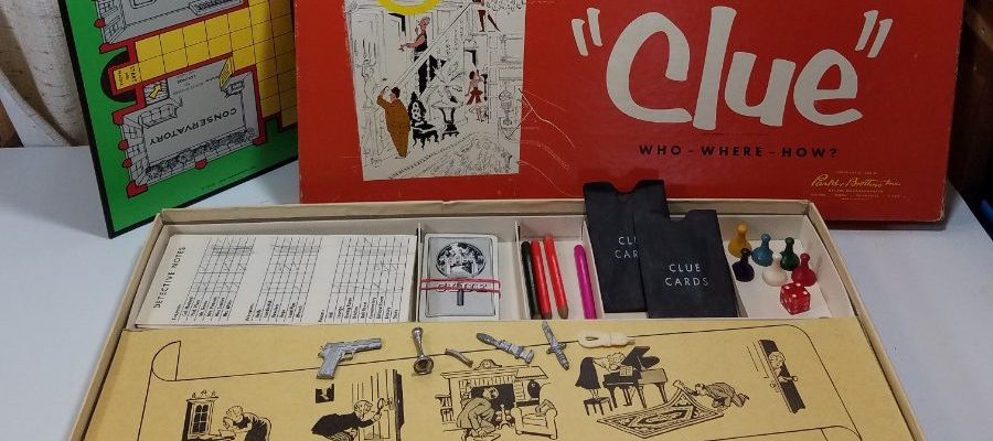 Prima di Clue, i giochi basati su gialli erano davvero pochissimi. Selchow & Richter aveva pubblicato Mr. Ree Fireside Detective seguita a ruota dalla Milton Bradley, con The Great Charlie Chan Detective Mystery Game, e dalla Parker Brothers, con S.S. Van Dine’s Philo Vance Detective Game, tutti pubblicati fra il 1937 e il 1938. Si trattava di giochi in cui si dovevano “recuperare” indizi per incastrare un colpevole. Il più originale era probabilmente Mr. Ree Fireside Detective: il colpevole era uno dei giocatori, e i cilindri cavi usati come pedine avevano la funzione di nascondere l’arma del delitto, una replica di metallo e in miniatura di oggetti utilizzabili come arma.